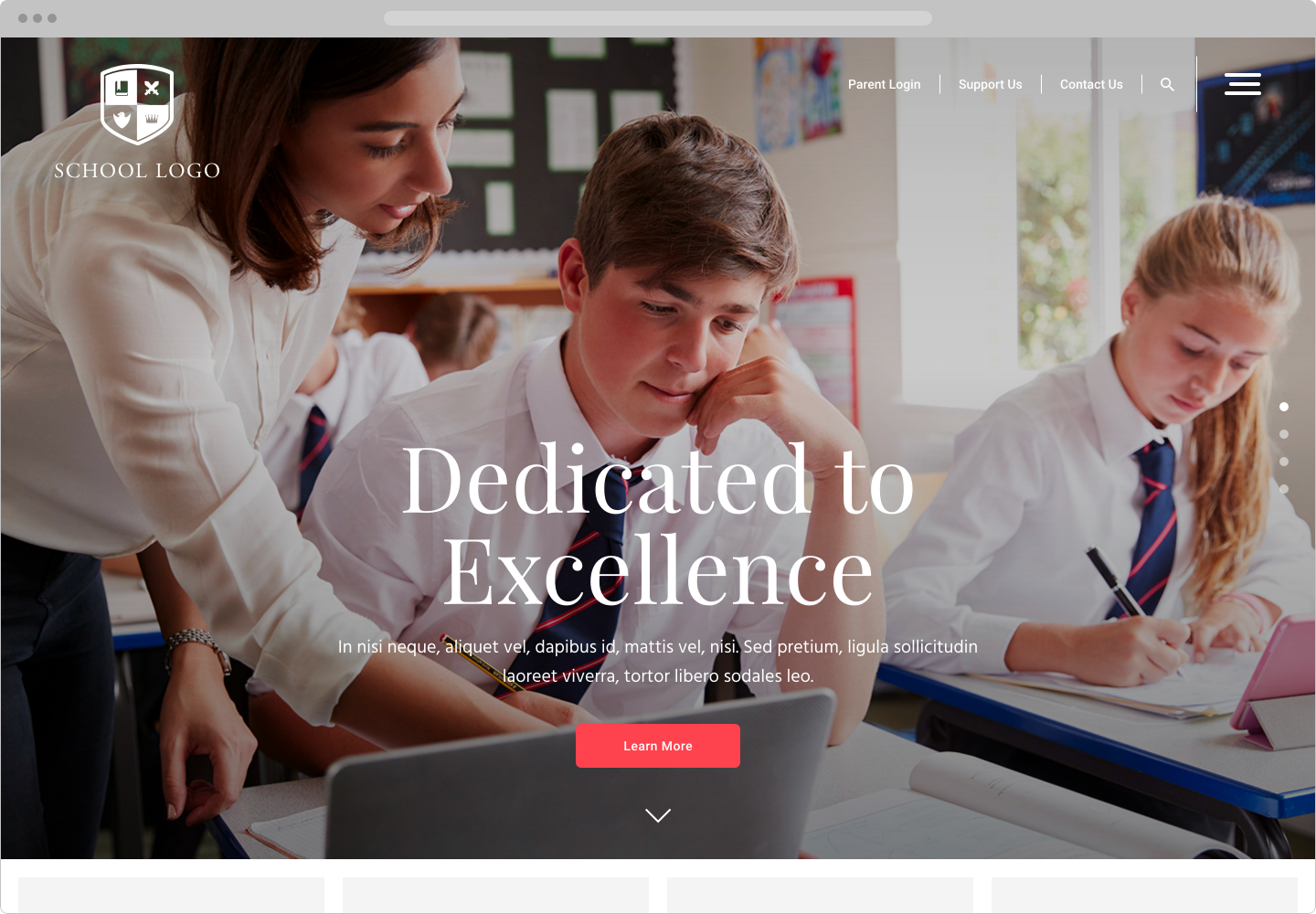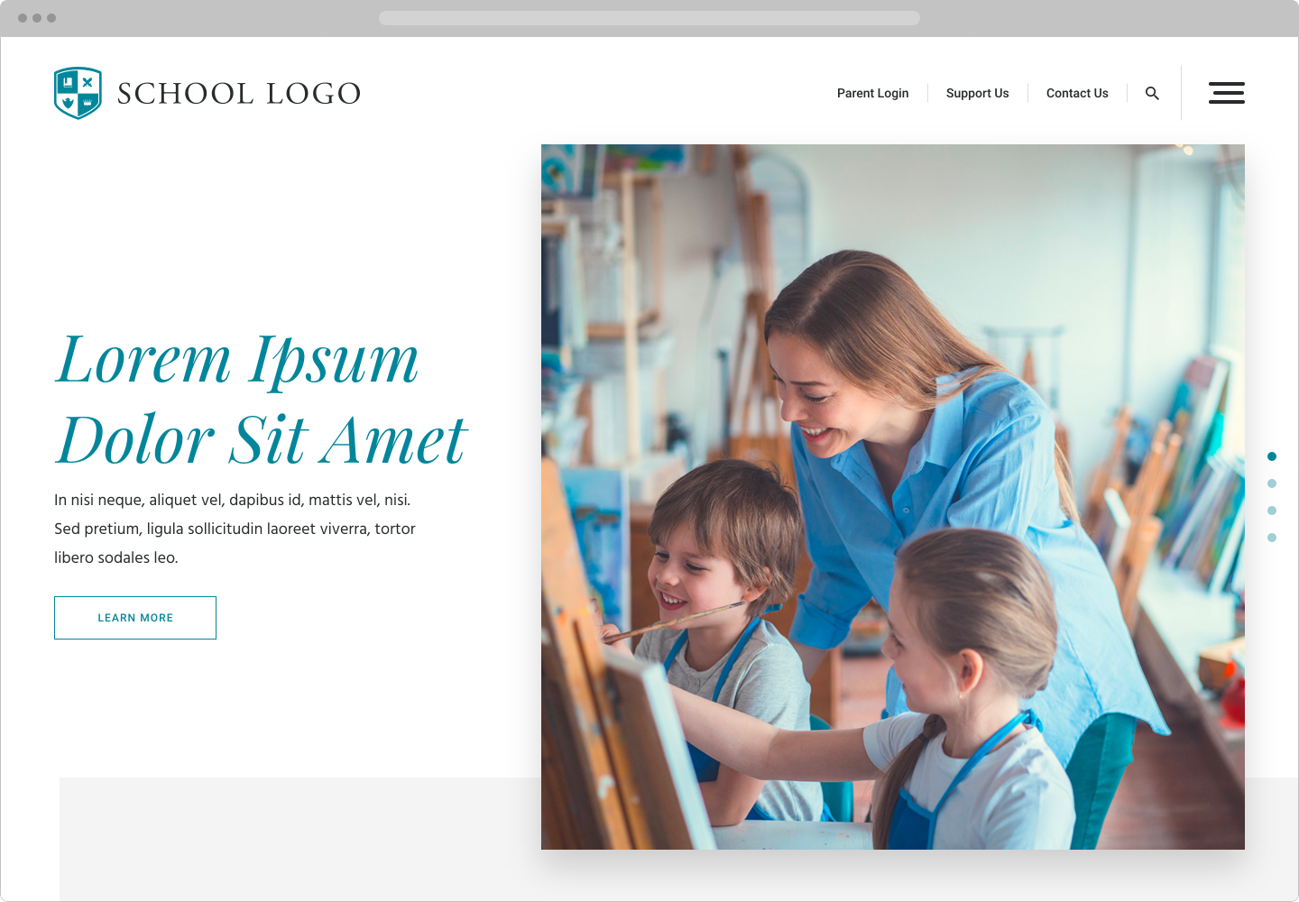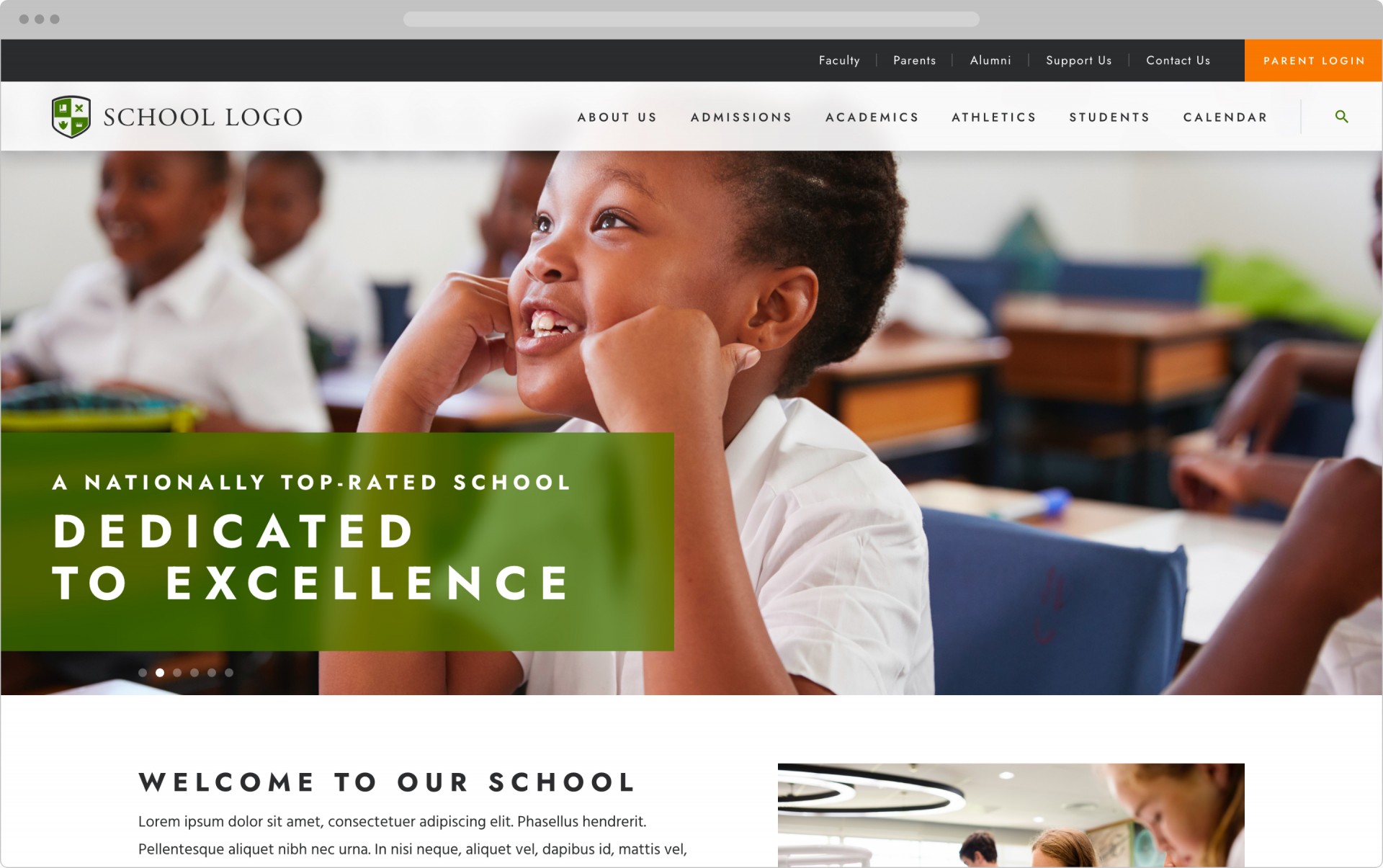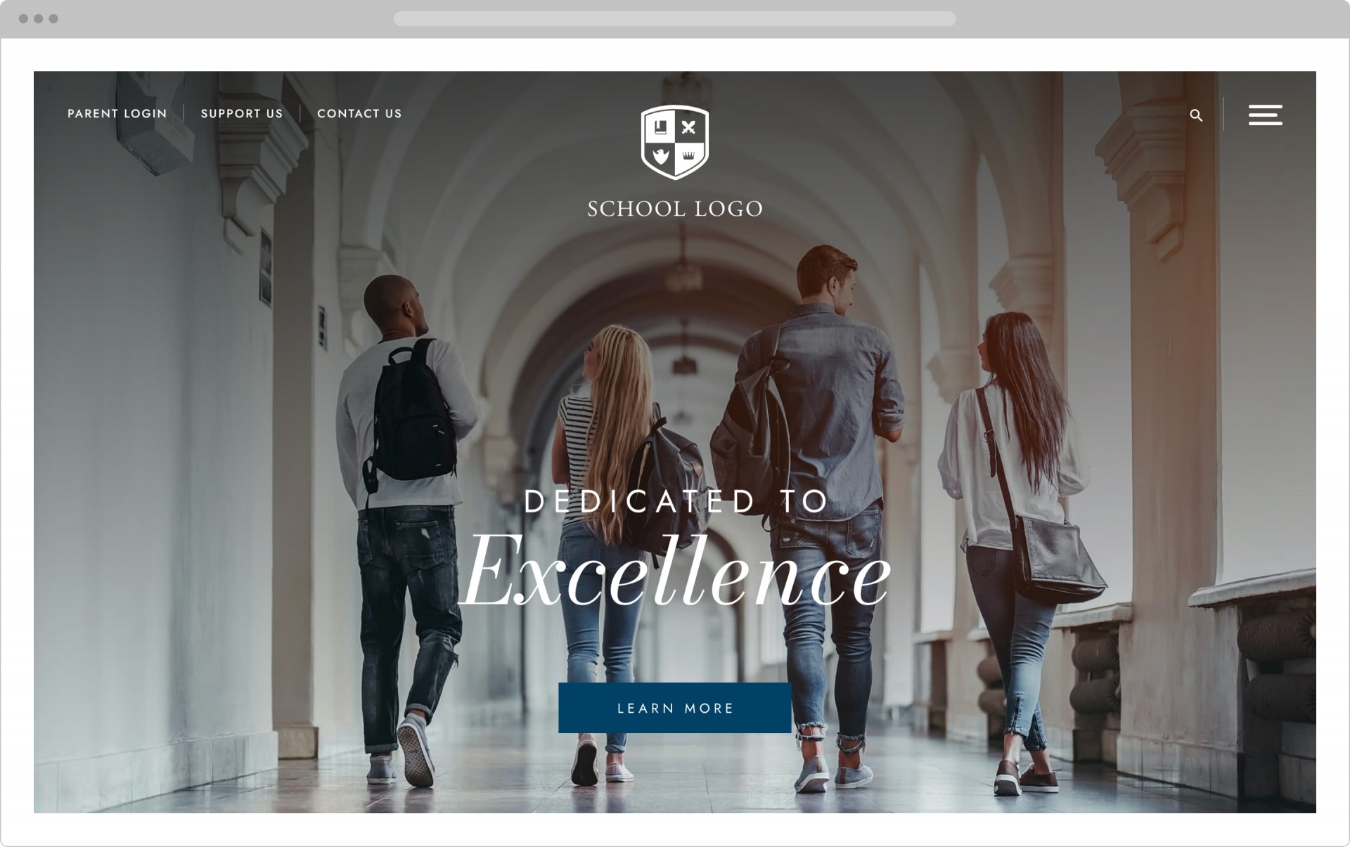 First select one of our exceptional theme designs and we’ll customize it with your school’s logo, colors, content and branding.